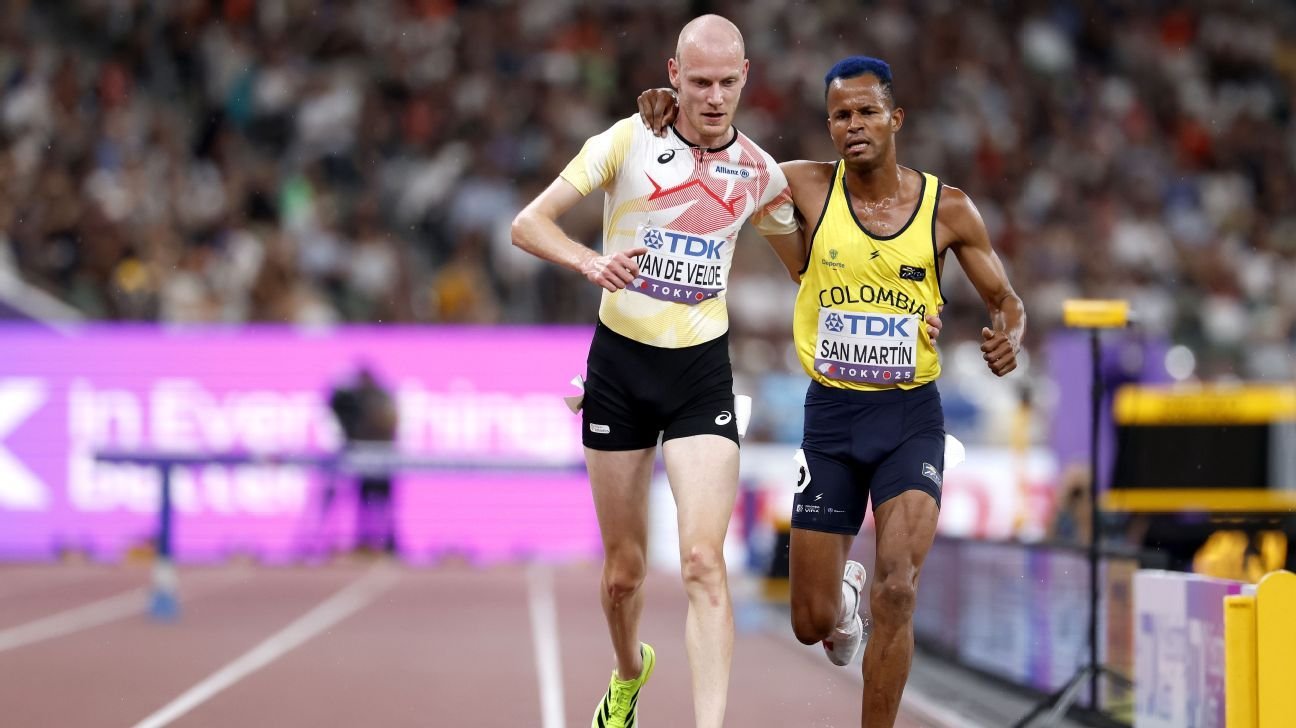 TOKIO-El obstáculo Tim van de Velde miró detrás de él y vio a un compañero competidor arrastrándose cautelosamente sobre la barrera final en un viaje de 3.000 metros que se equivocó terriblemente para ambos.