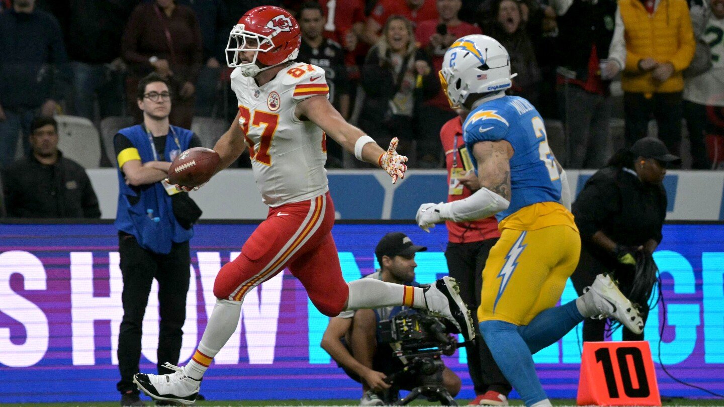 Kelce puede hacer 37 yardas de Patrick Mahomes, con 12:04 en el cuarto trimestre. El jefe fue dos puntos para tratar de empatarlo y pasar. Mahomes tenía la intención de que Noah Gray cayera incompleto, mientras que Teair lo destruyó.