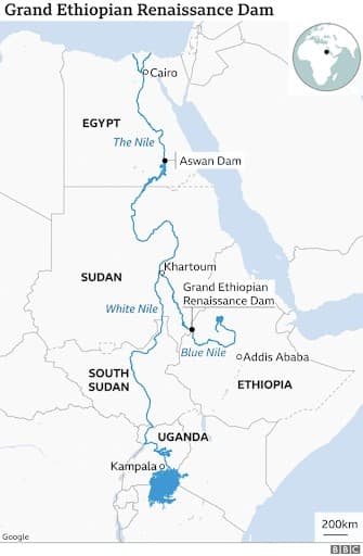 Egipto, el vecino del norte de Etiopía, el GERD es visto como una amenaza existencial debido a su gran dependencia del Nilo. El agua que fluye por el río más largo de África proviene principalmente del río Etiopía. Nilo Azul (aproximadamente el 65% del volumen del Nilo), con una importante contribución también de Etiopía. Río Atbara (14%) con Nilo Blanco dona el resto