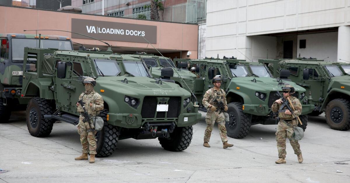 Las tropas de la Guardia Nacional comenzaron a llegar a Los Ángeles el domingo por la mañana, desplegándose alrededor de edificios federales en el condado de Los Ángeles.