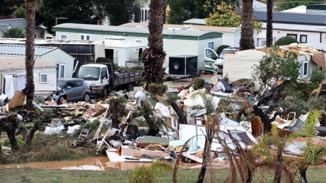 Las imágenes de un campamento de vacaciones en Albufeira, donde murió una mujer británica de 85 años, muestran la magnitud de los daños causados por vientos extremos de hasta 114 kilómetros por hora en el sur de Portugal.