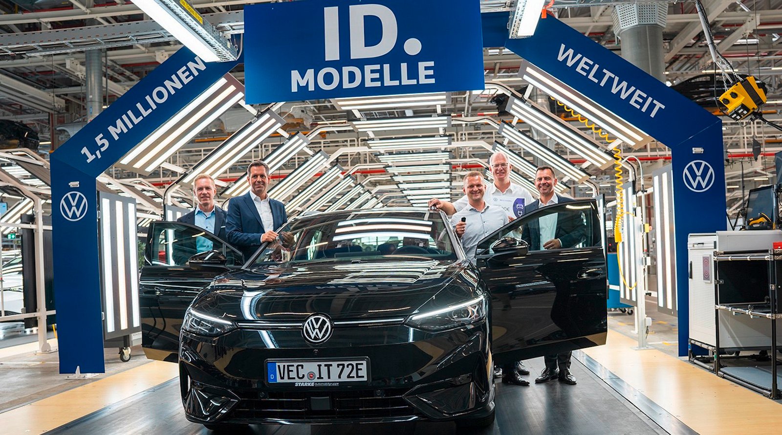 “Frente a la baja Sajonia Olaf tardía, 1,5 millones de vehículos en todo el mundo de todas las familias de identificación eléctrica fueron entregados a los clientes en la fábrica Volkswagen en Emden. Id.7 Tourer Pro, que mejora el nivel de la clase en la clase de 606 kilómetros. ” Volkswagen escrito–