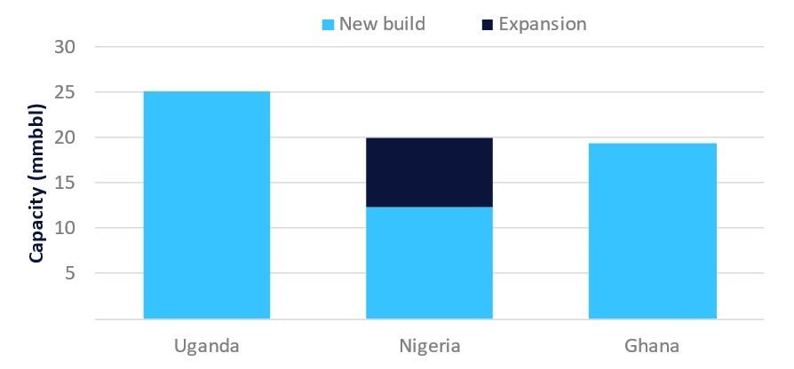 Se espera que Nigeria siga a Yukanda en términos de aumentar la capacidad de almacenar líquido para satisfacer la mayor demanda de destilado y exportaciones de petróleo. Lagos es el terminal principal en términos de aumentar la capacidad de producción, que probablemente aumentará la capacidad de producción de 6.3MBL dentro del año 203. La expansión de la refinería de petróleo de Dangote es el mismo proveedor de servicios del apio terminal y el Eghudu, Koko I y Kula.