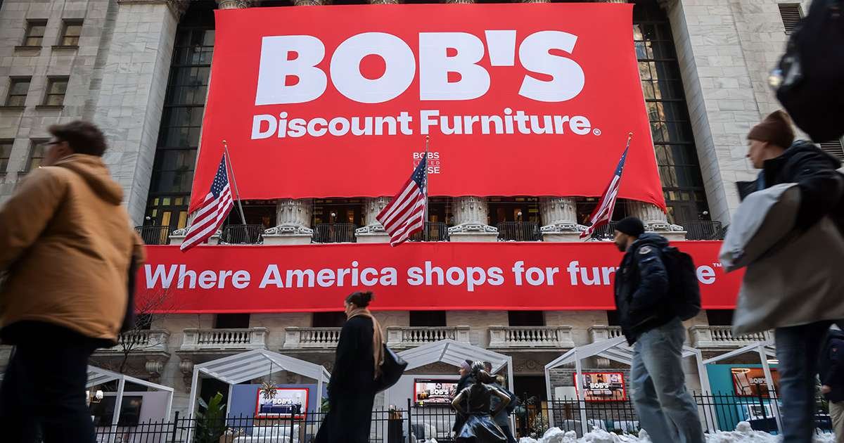 Oferta pública inicial de Bob’s Discount Furniture en la Bolsa de Nueva York el 5 de febrero. (Michael Nagle/Bloomberg)