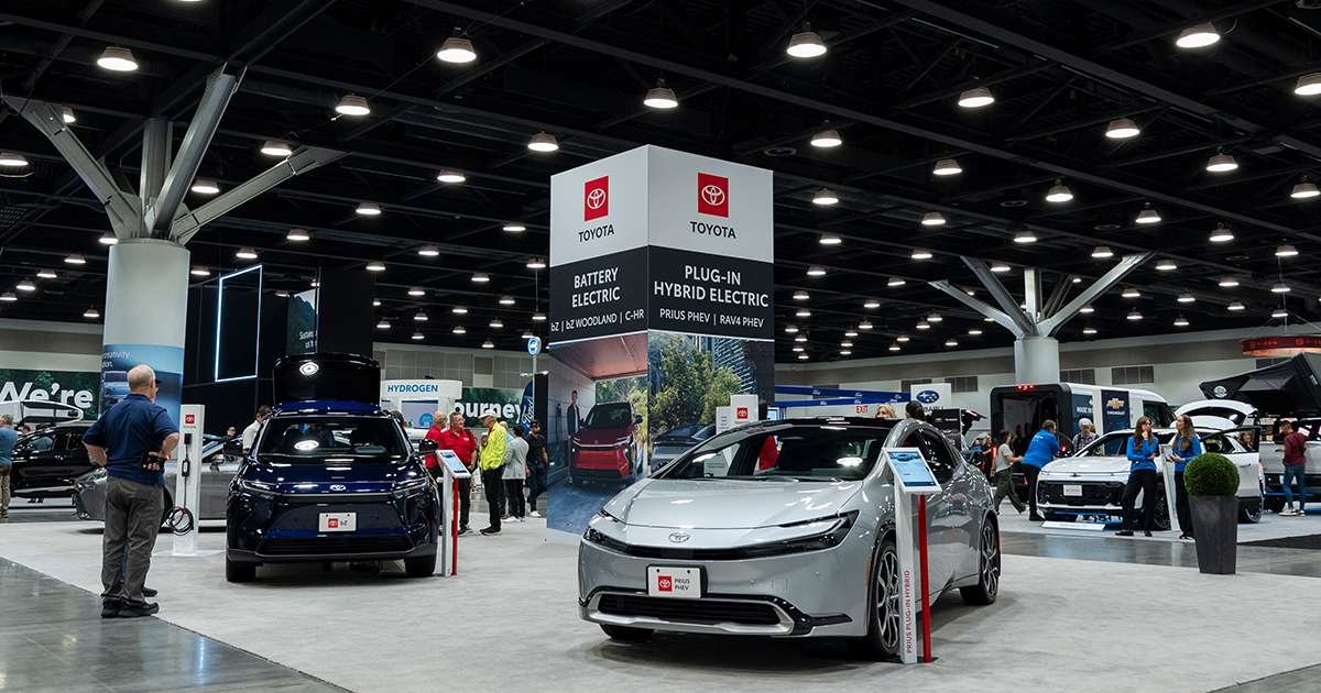 Vehículos eléctricos Toyota en la feria Everything Electric de Vancouver en septiembre. (Paige Taylor White/Bloomberg)