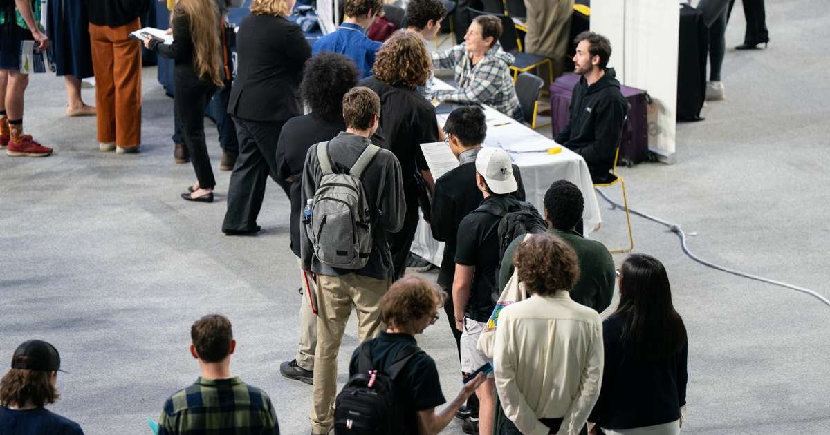 La gente asiste a una feria de empleo en Boone, Carolina del Norte, en octubre. (Allison Joyce/Bloomberg)
