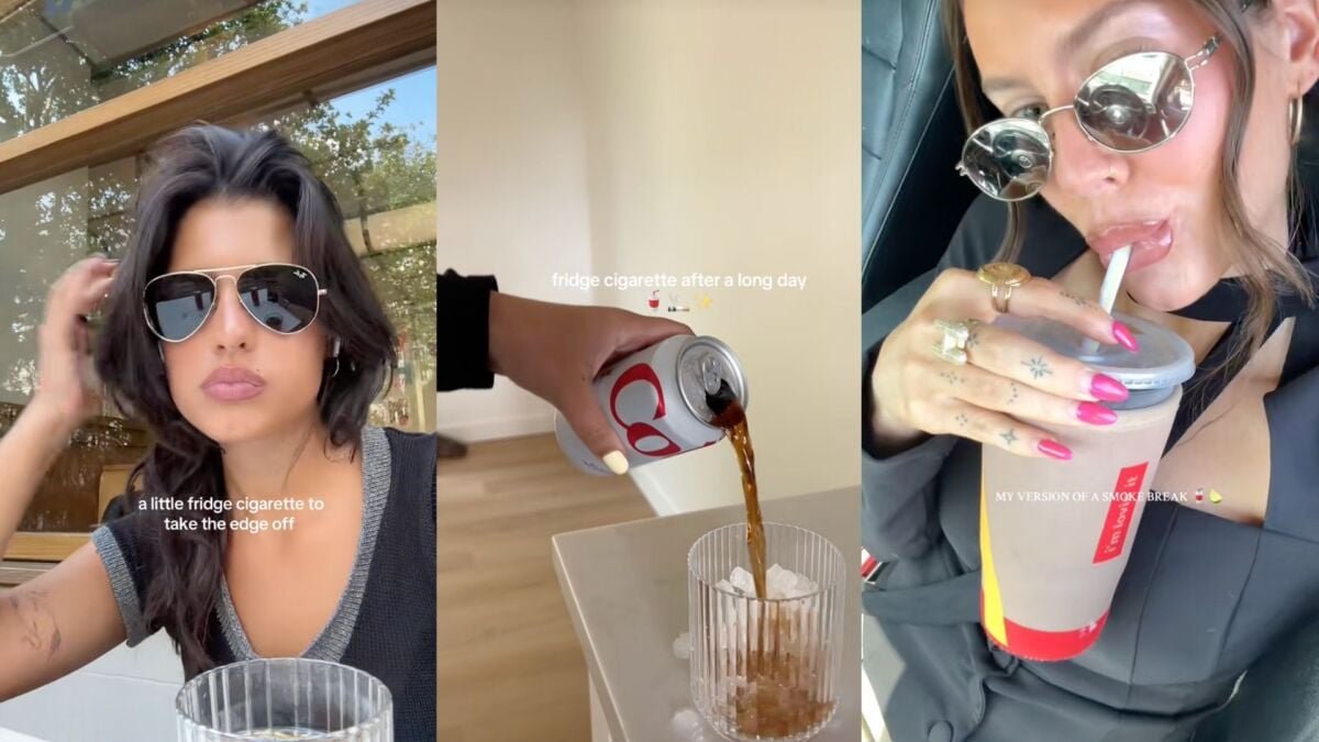 La tendencia despegó cuando la creadora Rachel Reno (@ReallyRachelreno) Publicaron un video de sí misma en un parque en Nueva York, bocadiendo en un sándwich, papas fritas y una Coca -Cola Light. Ella escribió: “Escuchó a alguien llamar a la Coca -Cola de dieta un ‘cigarrillo de refrigerador’ y nada ha sido más cierto para mí desde entonces”. También se refirió a la bebida como un “Ciggy crujiente”.