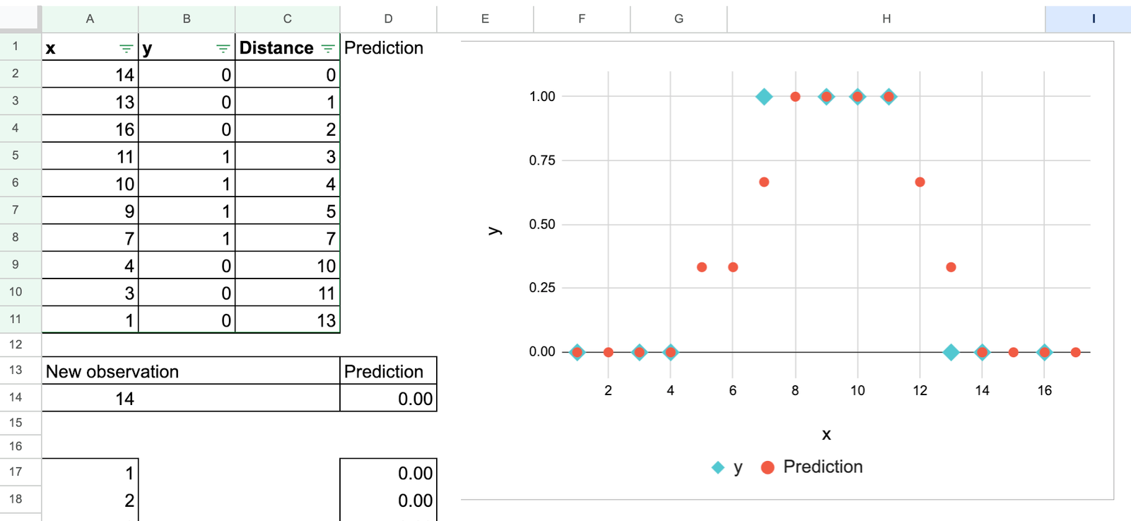 Clasificador k-NN en Excel – predicciones para una característica continua – imagen del autor