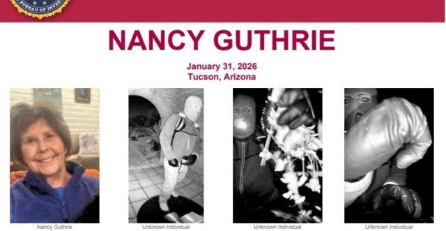 El FBI ofrece una recompensa de hasta 50.000 dólares por información que conduzca a la recuperación de Guthrie “y/o al arresto y condena de cualquier persona involucrada en su desaparición”. Guthrie fue vista por última vez en su casa la noche del 31 de enero y el FBI dice que se la “considera una adulta vulnerable que tiene dificultades para caminar, tiene un marcapasos y requiere medicación diaria para una afección cardíaca”.