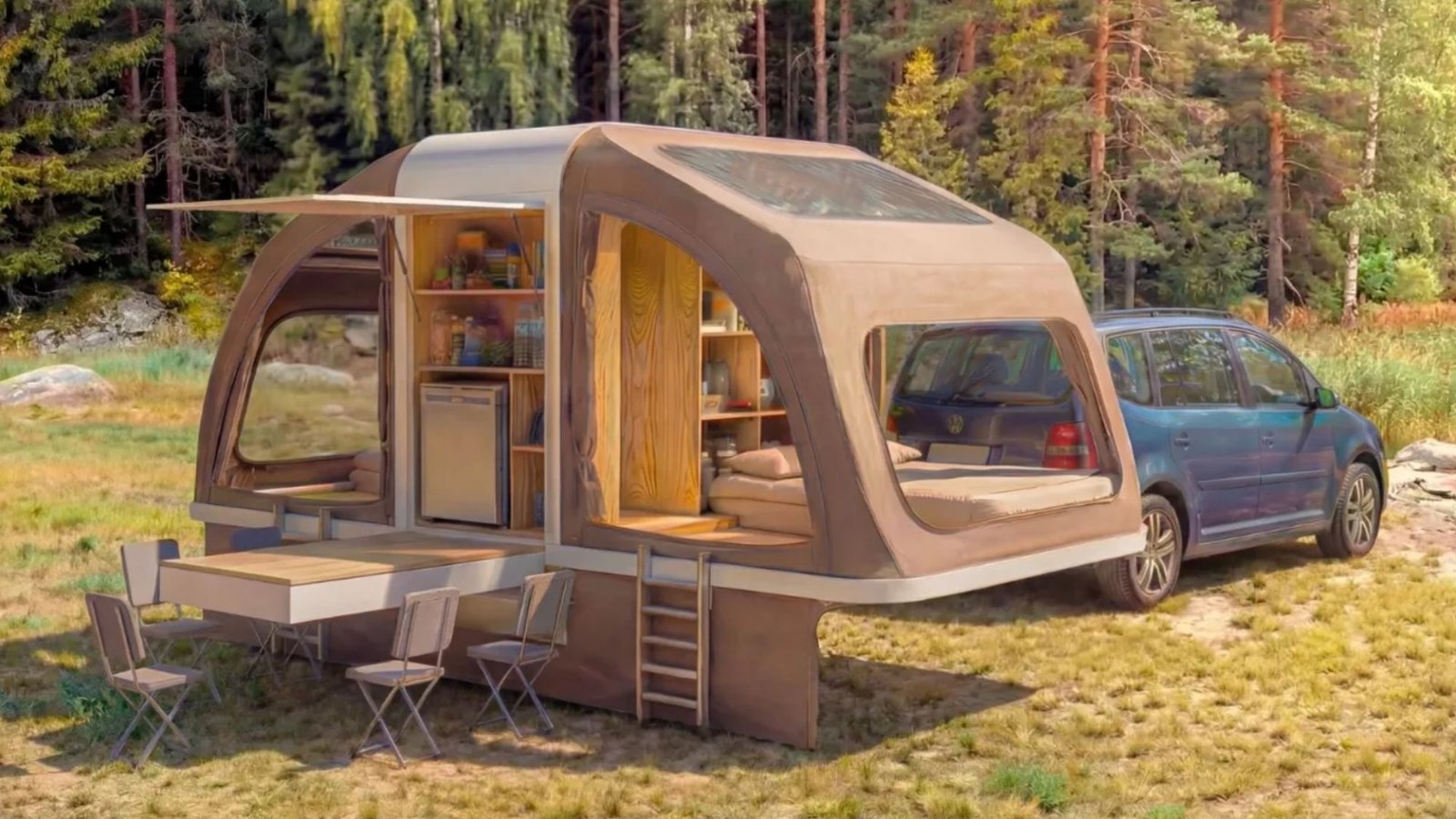 Los aficionados al CAMPING pronto podrán cambiar sus viejas y desvencijadas tiendas de campaña por una inesperada minicasa que se podrá acoplar a su coche.