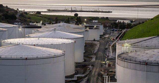 Tanques de almacenamiento de combustible en la terminal Sunoco LP en Crockett, California (David Paul Morris/Bloomberg)