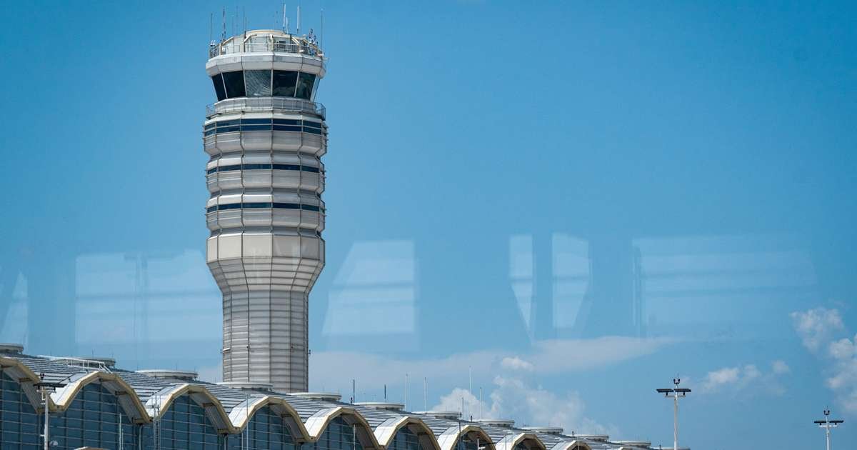 Una torre de control de tráfico aéreo en el Aeropuerto Nacional Ronald Reagan Washington. (Al Drago/Bloomberg)
