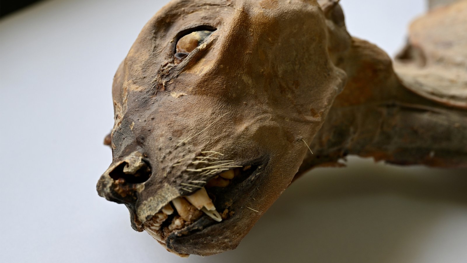Las momias de grandes felinos están tan bien conservadas que se pueden ver sus ojos nublados y partes del cuerpo marchitas.