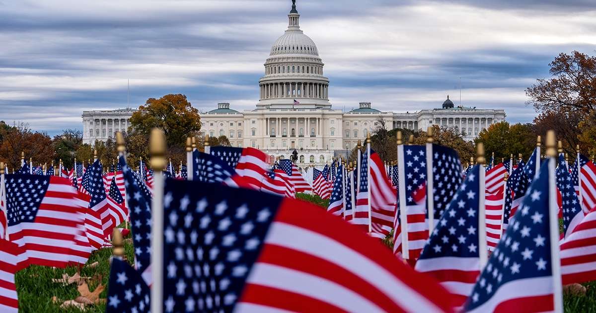 Banderas estadounidenses ondean al viento en el National Mall cerca del Capitolio en Washington el 10 de noviembre. (J. Scott Applewhite/AP)