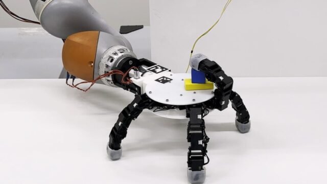 Un equipo formado por Billard, el investigador de LASA Xiao Gao y Kai Junge y Josie Hughes del Laboratorio de Fabricación y Diseño de Robots Computacionales ha diseñado una mano robótica que supera estos desafíos. Su dispositivo, que puede soportar hasta seis dedos idénticos con puntas de silicona, resuelve el problema de la asimetría humana al permitir que cualquier combinación de dedos forme pares opuestos en una pinza similar a un pulgar. Gracias a su diseño reversible, el “dorso” y la “palma” de la mano robótica son intercambiables. La mano puede incluso desprenderse del brazo robótico y “gatear”, como una araña, para agarrar y transportar objetos más allá del alcance del brazo.