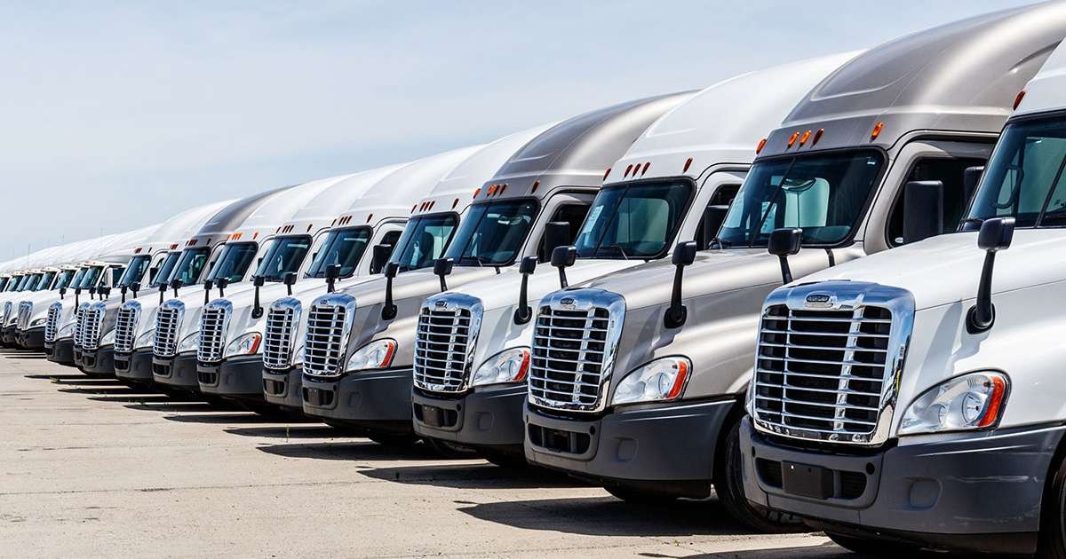 Camiones Freightliner alineados para la venta en Indianápolis. (Jonathan Weiss/Tiempo de sueños/TNS)