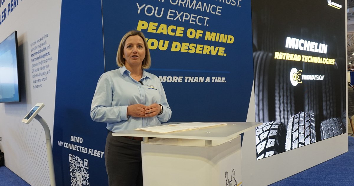 La empresa presentó TreadVision de Michelin Retread Technologiesuna plataforma que utiliza inteligencia artificial, robótica y medición láser para automatizar y estandarizar pasos importantes en el proceso de renovación. Michelin también reveló Neumático predictivo inteligenteuna solución de monitoreo de neumáticos de remolque de su filial Michelin Connected Fleet diseñada para flotas de Clase 7 y 8.