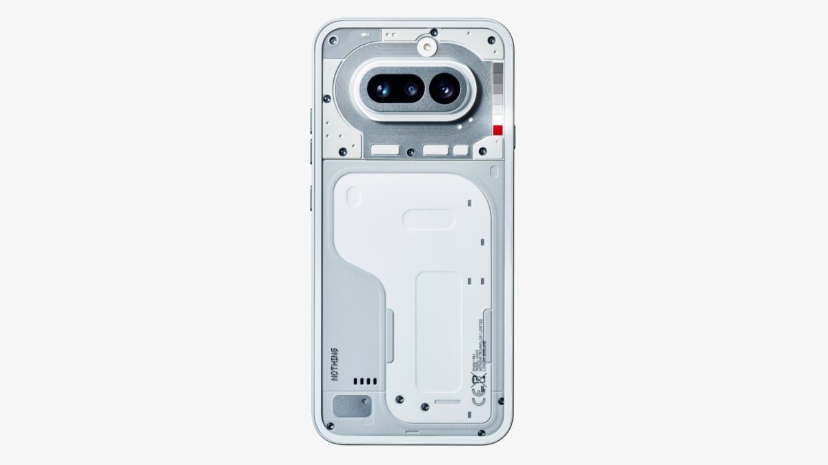 La imagen muestra el teléfono desde atrás, luciendo el diseño industrial/semidesnudo característico de Nothing. También revela un nuevo tipo de barra de glifos, junto a la protuberancia de la cámara, con nueve mini-LED, que probablemente ofrezcan aún más opciones de personalización.