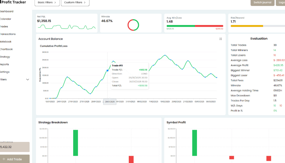 Profit Tracker se destaca como la mejor aplicación de diario comercial para principiantes debido a su simplicidad, asequibilidad y análisis inteligente. Está diseñado para ayudar a los operadores a crecer más rápido sin pasar horas administrando datos.